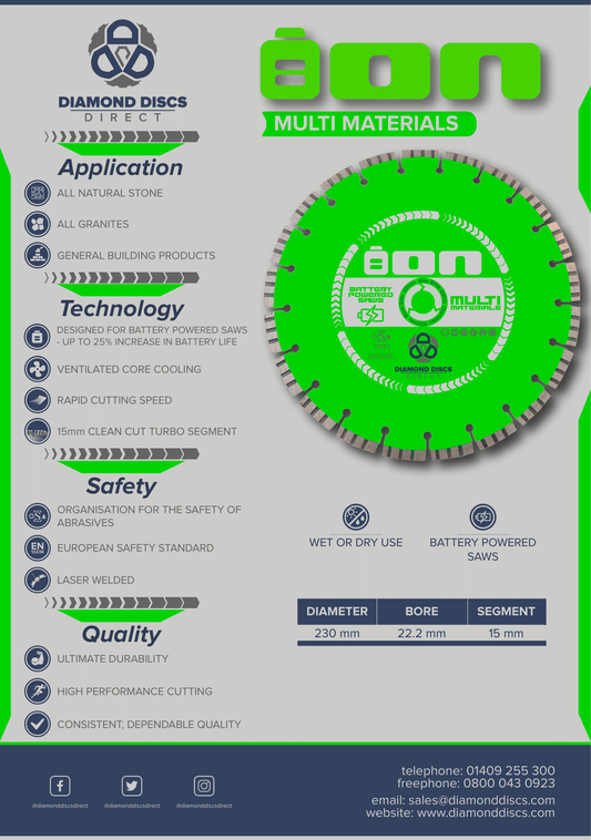 ION Multi Materials Battery Saw Diamond blade 230mm